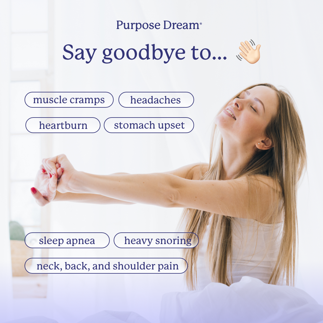 The Purpose™ Pillow promotes better breathing by lifting and opening the airway — which may help reduce snoring for some users. However, sleep apnea is a medical condition, so we always recommend consulting a healthcare professional for personalised advice.